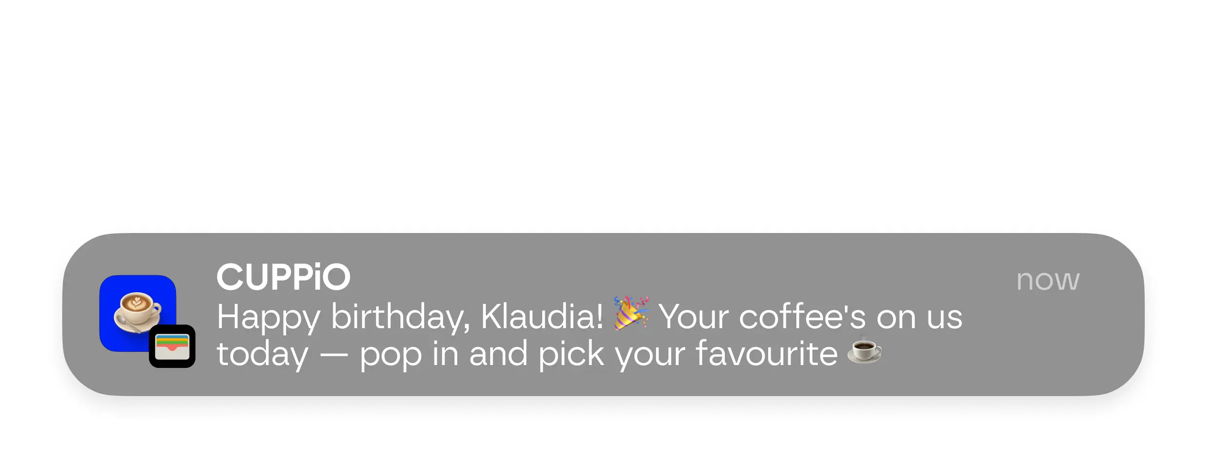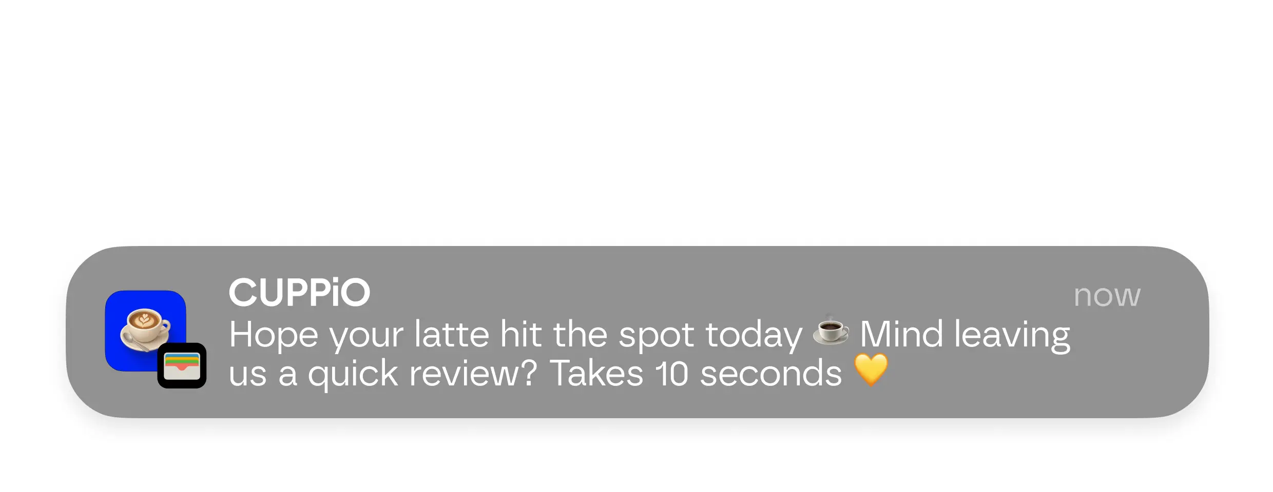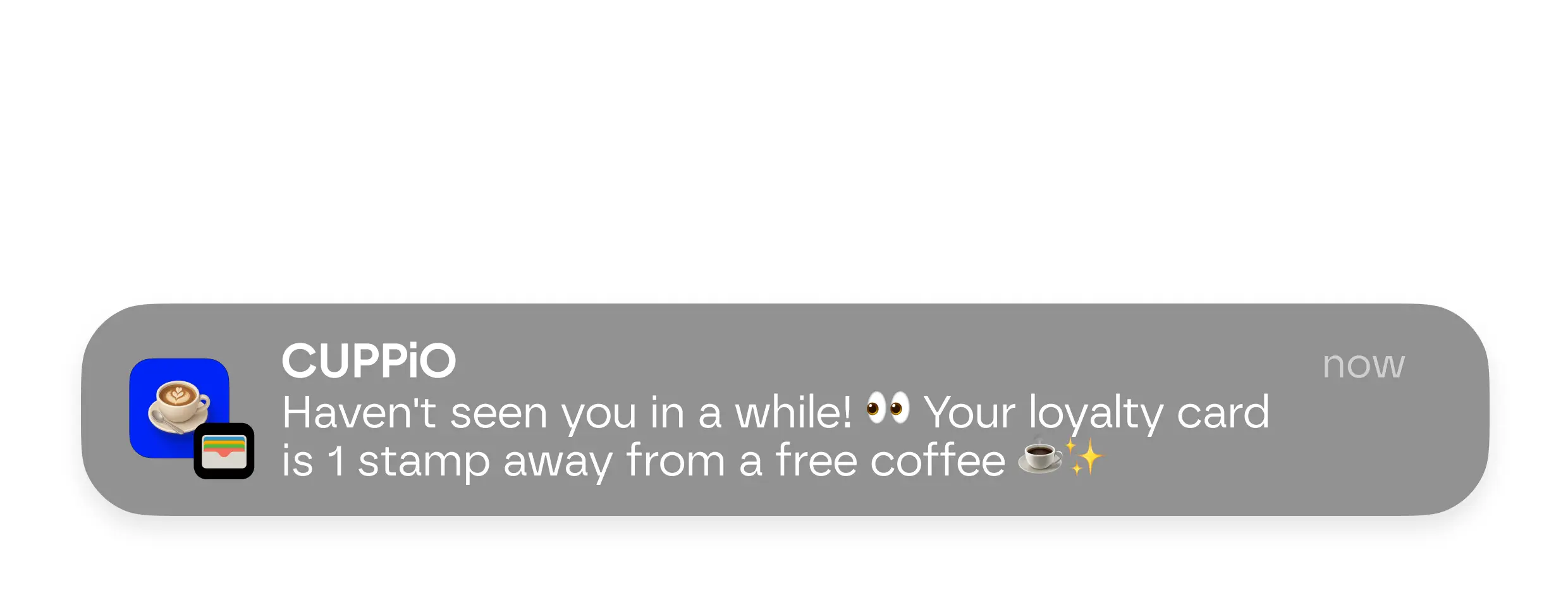 Priama komunikácia so zákazníkmi, kedykoľvek a o čomkoľvek. Správa príde rovno na zamknutú obrazovku cez Apple Wallet a Google Wallet — bez aplikácie.