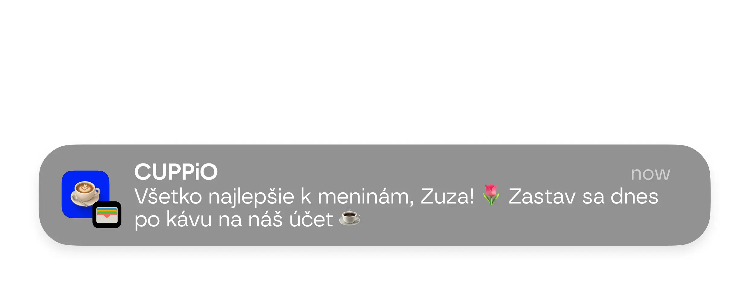 Zistiť viacNie. Správy sa zobrazujú priamo na zamknutej obrazovke cez wallet kartu, ktorú už majú. Žiadne sťahovanie aplikácie, žiadna registrácia, žiadne prekážky — len notifikácia.